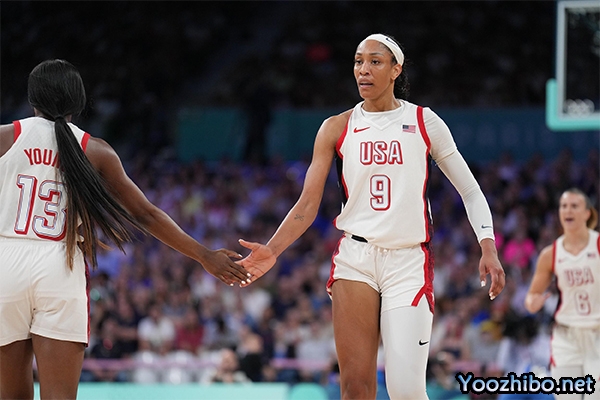 美国女篮:阿贾-威尔逊,布里安娜-斯图尔特,娜菲莎-科利尔,C-盖伊,陶乐西;