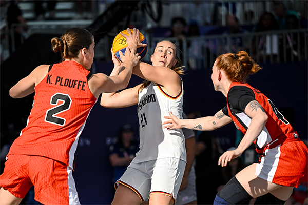 JRS直播网8月6日讯 奥运会女子三人篮球进入到了半决赛的争夺,德国三人女篮和加拿大三人女篮展开对决,德国在小组赛中拿到6胜1负的战绩排在第一直接晋级,加拿大则在附加赛中力克澳大利亚拿到半决赛名额。比赛开局格雷纳赫和凯西-波什相继命中远投为各自球队拿分拉开序幕,随后双方攻防节奏很快,加拿大短短2分钟里就领到3次犯规,不过加拿大没有受到影响反倒是连着冲击篮下得手拉开4分优势占据主动。后半段加拿大犯规上来问题逐渐显现,德国利用罚球和冲击篮下的不断抢分送出5-0并依据反超比分。末段双方持续拉锯悬念保留到最后,状态神勇的格雷纳赫成为英雄站出来连拿3分重新取得领先,最后又打入关键进球上演绝杀。最终,德国女篮16-15力克加拿大杀入决赛,他们的争金对手是西班牙,加拿大则和美国争夺铜牌。