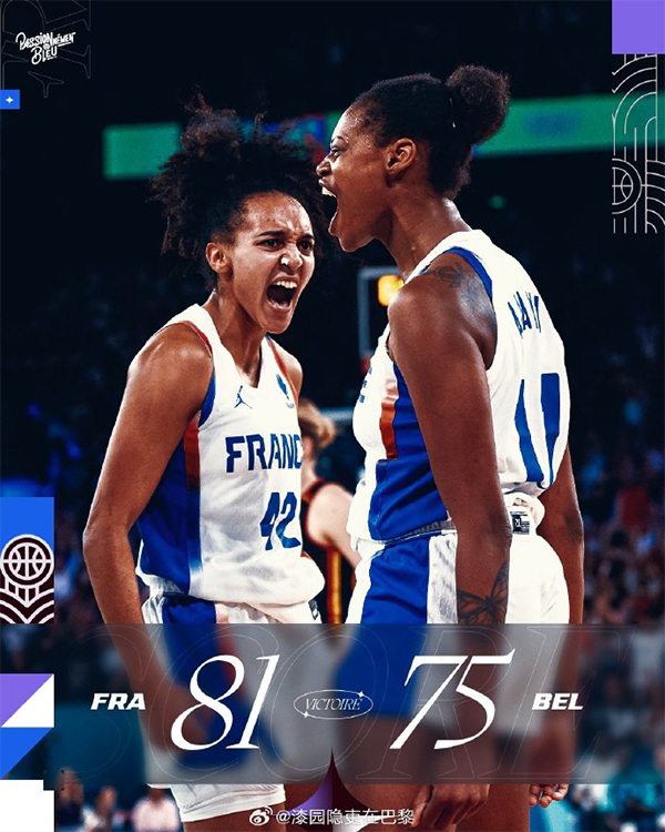 JRS直播网讯 08月10日讯 巴黎奥运女篮半决赛,法国女篮迎战比利时女篮。首节比赛,双方打得难分难解,比利时首节结束17-14领先,次节回来两队你来我往,半场结束比利时36-31领先法国女篮5分。半场回来风云突变,比利时开场打出10-0,一举拉开分差,法国女篮立刻回了一个10-0,三节结束,法国女篮48-51只落后3分。第四节比赛,法国女篮开始反击,扭转了分差,最后时刻一度领先6分,比利时造3罚全中迫近到3分分差,再命中三分直接追平比分。最后8.2秒,法国最后一攻失利,双方进入加时。加时赛,法国队先声夺人,但比利时依旧顽强追分,但法国队最终把握住了微弱的领先,拿到胜利,杀入奥运女篮决赛。