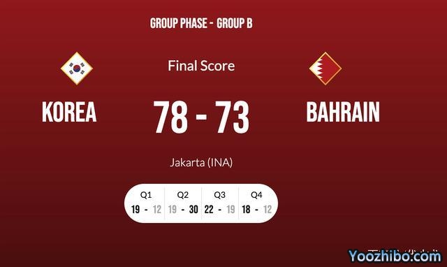 JRS直播网讯:北京时间7月16日讯 男篮亚洲杯小组赛,韩国队以78-73力克巴林队,三战全胜晋级八强。