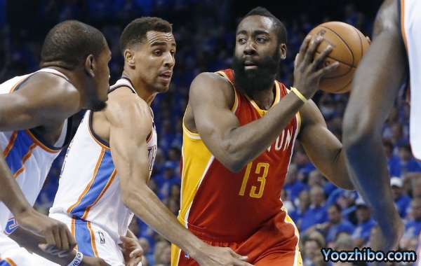 哈登前三节三分球6投6中,拿下了28分,杜兰特则为雷霆得了36分。