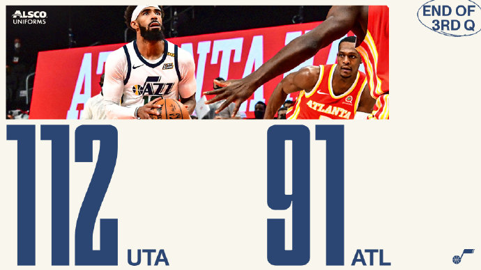 JRS直播网2月5日讯 NBA常规赛老鹰主场迎战爵士,特雷-杨今日缺战。开场后虽然许尔特首先拿分,但米切尔和博扬联手一波12-0帮助爵士取得领先,首节两队都失误不少,许尔特多次为老鹰追分,第二节两队手感仍旧一般,爵士还是稍稍占据优势,上半场爵士45-37领先。下半场回来在米切尔和博扬的带领下爵士打出攻势拉开比分,第四节爵士更是将分差拉大到20分开外,比赛失去悬念,最终爵士112-91轻松战胜老鹰。