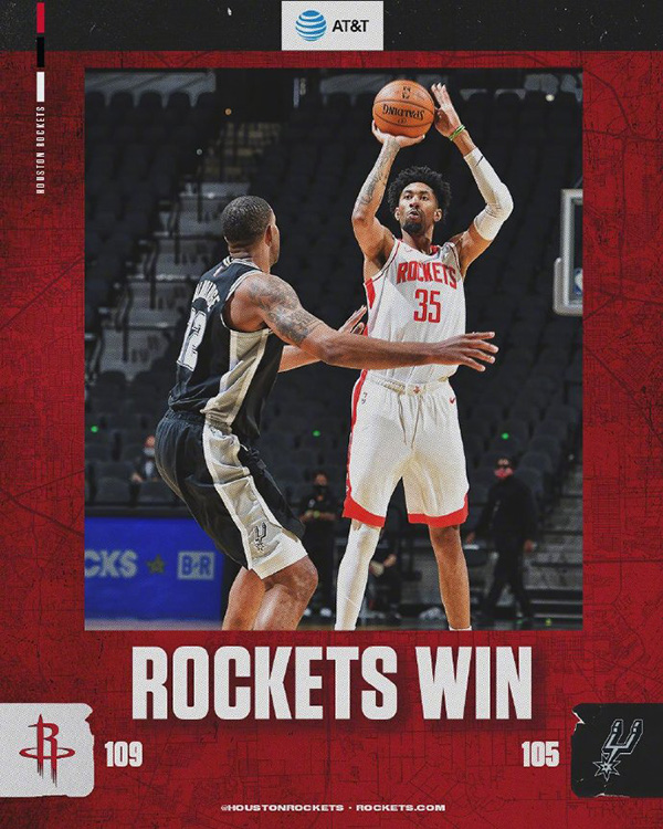 JRS直播网1月15日讯 马刺今日坐镇主场迎来火箭的挑战,火箭刚刚完成交易送走球队核心詹姆斯-哈登,新援奥拉迪波没能赶上比赛外,沃尔和戈登因伤也均缺席比赛。火箭虽然缺兵少将但却在上半场一直占据着上风,伍德成为进攻端绝对核心并半场就取得15分11篮板的两双数据,他们也在第二节确立起两位数的领先,不过马刺在第二节后半段回暖并依靠两记三分和两记2+1将劣势追至3分结束上半场。下半场马刺凭借开局6-0的攻势反超比分,但一直占优的他们没能顶住压力,末节一直发挥失常的德罗赞和阿尔德里奇联手拿下14分曾为马刺拉开9分优势,但火箭随后突然爆发,在伍德连拿8分的带领下火箭送出15-2的攻势扭转局势。德罗赞则在最后时刻连续错失扳平机会。最终,火箭在缺兵少将的情况下险胜马刺结束2连败。