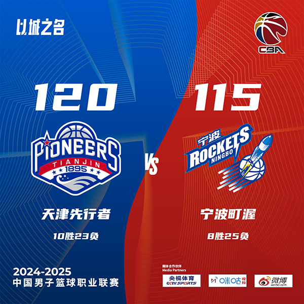 JRS直播网讯 北京时间1月19日讯 CBA常规赛,天津主场迎战宁波。天津9胜23负排联赛第15,宁波8胜24负紧随其后。上半场,天津连中三分打出15-5的开局,宁波不断冲击内线连投带罚完成反超,此后双方陷入缠斗,比分交替领先,林庭谦连中三分带队打出10-2的攻击波占据主动,宁波连投带罚顽强追赶,半场战罢天津57-52领先宁波。下半场,天津占得先机取得两位数优势,宁波内外开花缩小分差,末节天津稳扎稳打保持优势,宁波采用犯规战术,乔丹-霍华德连中三分将分差迫近到只剩2分,林庭谦两罚全中。最终,天津120-115击败宁波,送给对手9连败。