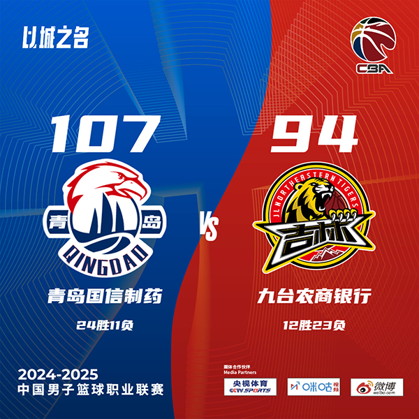 JRS直播网讯 北京时间1月25日讯 CBA常规赛,青岛今日迎战吉林,前者上场比赛战胜四川,后者则是输给新疆。比赛上来,两队的进攻表现都不太好,半节时间得分均未上双,不过青岛随后在两分钟的时间里轰出一波11-0的小高潮拉开分差,首节末段到次节初,吉林连拿七分又追了回来,但随后他们就陷入到得分荒,青岛再打11-0建立起两位数的领先优势,半场结束时吉林落后13分;下半场回来,两队展开对攻,分差并没有发生太大变化,青岛始终握有十分以上的领先,末节吉林也没有再获得任何机会,最终青岛轻取吉林迎来连胜。
