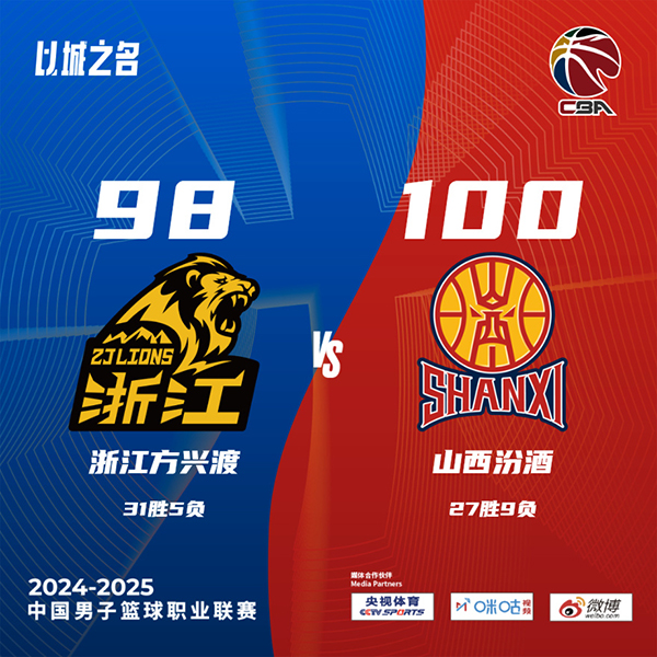 JRS直播网讯北京时间3月5日讯 CBA常规赛,广厦主场迎战山西。广厦目前12连胜,31胜4负稳居联盟榜首,山西则是26胜9负位居次席。比赛开始,原帅上来连中三分助山西打出不错开局,但孙铭徽有攻有传,布朗也有发挥,广厦一波11-0迅速反超比分,张宁上来里突外投连砍8分止血,首节广厦领先3分,次节双方展开拉锯战,胡金秋里突外投依然稳健,迪亚洛连续反击回应,原帅还命中3+1,半场山西追到差2分。下半场,古德温上来接连反击带队11-0反超比分,但山西很快犯满,广厦接连罚球追分,但迪亚洛压哨打板三分还帮助山西领先7分,末节广厦迅速犯满,山西重新拉开双位数领先,但布朗和孙铭徽接连三分继续咬住比分,广厦顺势打出12-1直接反超比分,随后双方进入白热化,张宁上篮压哨绝杀,最终山西100-98险胜广厦。