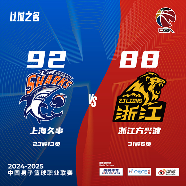 JRS直播网讯北京时间3月7日讯 CBA常规赛今日继续开打,广厦和上海迎来一场交手。广厦上一场惨遭山西绝杀结束12连胜,上海则击败天津迎来第三阶段赛事的开门红。首节开局上海率先发难,开局洛夫顿和李添荣两记三分带队拿到8-0的开局;广厦2分钟里没能得分被迫叫了暂停,不过暂停回来后他们迅速回敬8-0追上比分。这之后双方展开激烈周旋最大分差不过4分;次节场面依旧但双方整体手感一般,上海虽然开局两记三分开壶但整个上半场就命中4记三分,广厦方面更是糟糕导致进攻端受限,两队低效的攻势导致卡尔顿半场就抢下17个篮板,上海则依靠王哲林半场14+10的两双表现一直保持领先并奠定半场8分优势。休息归来上海状态更加出彩开局不久就拉开两位数分差,整个上半场就命中4记三分的上海在第三节命中6记并在第四节最多取得17分优势;广厦也没有就此溃败,相反他们送上16-4的攻势追至5分重燃希望,不过布莱德索最后连拿关键5分并重新拉开10分杀死比赛。最终,上海击败广厦取得过去7场比赛里的第6场胜利,广厦则遭遇赛季首次连败。
