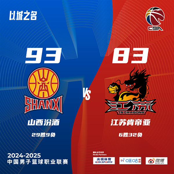 JRS直播网讯北京时间3月10日讯 CBA常规赛,山西今日迎战江苏,前者近来取得两连胜,后者则是遭遇三连败,比赛上来,山西两个外援各打一个都没有斩获,江苏先拿五分取得领先,整个第一节的绝大部分时间里江苏都占据场上优势,而山西只拿到18分,次节山西的表现依旧没有好转,迪亚洛更是多次扣篮砸飞,江苏逐渐将分差拉开到两位数,半场结束时山西落后12分;下半场回来,山西终于找回状态,他们连续完成抢断由布兰登-古德温得分,单节净胜16分完成反超,末节江苏虽然紧咬比分却始终无法再反超获得领先机会,最终山西力克江苏,迎来三连胜的同时也送给后者四连败。