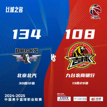 JRS直播网3月19日讯 CBA常规赛,北京主场迎战吉林,北京9连胜后29胜12负排在第4位,吉林5连败后13胜28负排在第14位。比赛开始,双方都迅速进入状态,纳托尔有攻有传联手周琦撑起进攻,吉林还是琼斯一人苦苦支撑,曾凡博送出空接暴扣,首节北京领先5分,次节北京替补发力轰出10-2直接拉开双位数领先,琼斯继续撑起进攻,基兹林克和鲁吐布拉也能止血,但北京多点开花半场还是领先12分。下半场,双方展开拉锯战,琼斯联手基兹林克带队追分,但周琦内外开花给出回应,杰曼怒喷裁判被驱逐,但三节北京还是领先12分,末节曾凡博开始发力,连续攻击内线单节砍下16分帮助北京扩大到20分以上领先,吉林无力回天,最终北京134-108击退吉林,豪取10连胜同时送对手6连败。