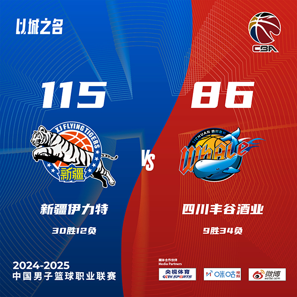 JRS直播网讯 北京时间3月22日讯 CBA常规赛,新疆主场迎战四川,新疆目前29胜12负排在第7位,四川则是9胜33负排在第18位。本场比赛,赵睿缺阵。比赛开始,四川上来进攻就完全打不开,新疆全员发力打出20-4梦幻开局一举建立主动权,亨特有攻有传终于止血,新疆首节领先15分,次节四川使用联防让新疆很不适应,亨特连续高难度进球一度追到个位数分差,但新疆连续二次进攻回应半场还是领先13分。下半场,双方展开拉锯战,新疆接连外线发炮一波8-0重新拉开20分以上领先,四川追分但哈雷尔接连暴扣还能回应保持20分左右领先,末节新疆重新拉开20分以上领先,随后双方围绕着20分左右分差展开拉锯战,最终新疆115-86轻取四川。