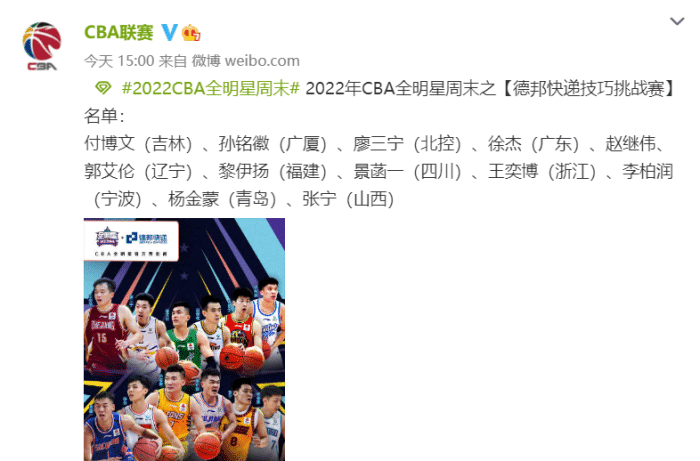 19日,CBA联赛官方公布各个单项的参赛名单,技巧挑战赛的阵容很豪华,郭艾伦、赵继伟、徐杰、孙铭徽等国手参加,本赛季表现出色的张宁也入选。三分大赛,原帅领衔,胡明轩在列。扣篮大赛,张镇麟还是最大热门,不过本赛季他还没有参加正式比赛,身体恢复情况也成为比赛的一个看点。