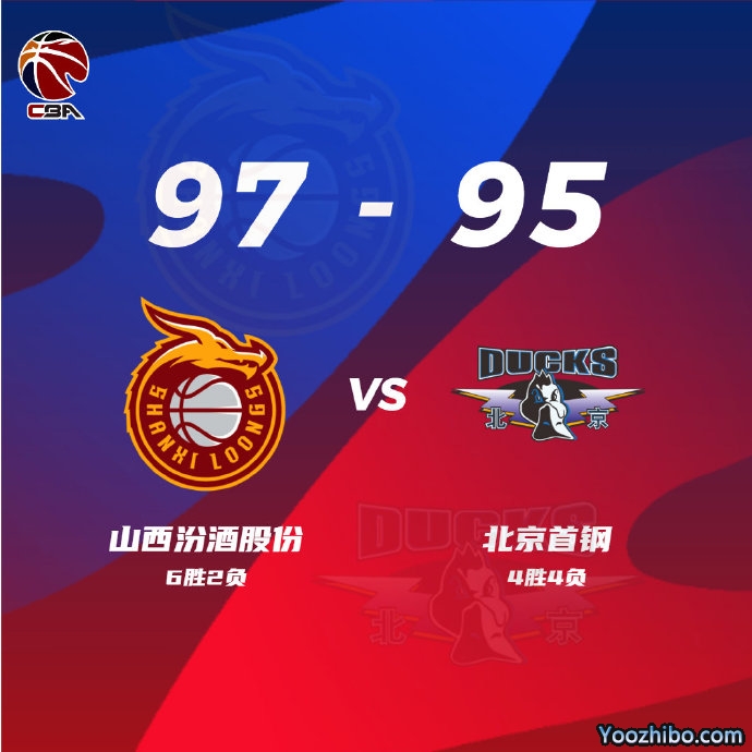 JRS直播网讯:北京时间10月27日,CBA常规赛第8轮山西汾酒股份对阵北京首钢,此役双方鏖战四节,首钢最后一攻曾凡博被逼出失误,最终山西97-95险胜首钢。