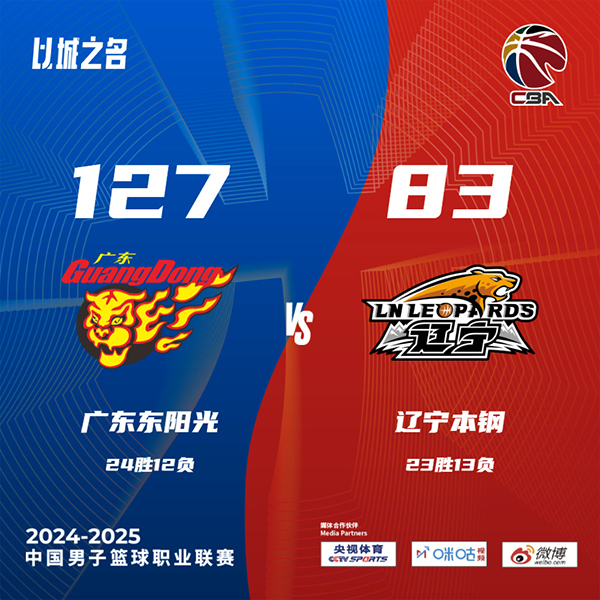 广东127-83大胜辽宁44分 特雷-伯克首秀26分 杜润旺21分