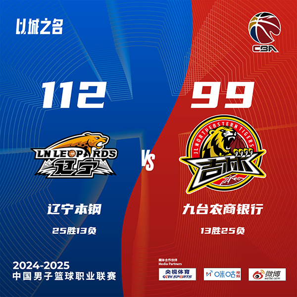 JRS直播网讯:北京时间3月9日晚,CBA常规赛第38轮开战,在辽宁男篮主场与吉林男篮展开东北德比。本场比赛辽宁男篮在首节领先的情况下,被吉林队第二节净胜10分反超比分,下半场辽宁男篮在赵继伟带领下多次打出连续攻势取得领先,虽然吉林男篮顽强地多次追分,但辽宁队关键时刻表现更胜一筹,最终辽宁男篮112-99力克吉林男篮赢得东北德比,取得两连胜。