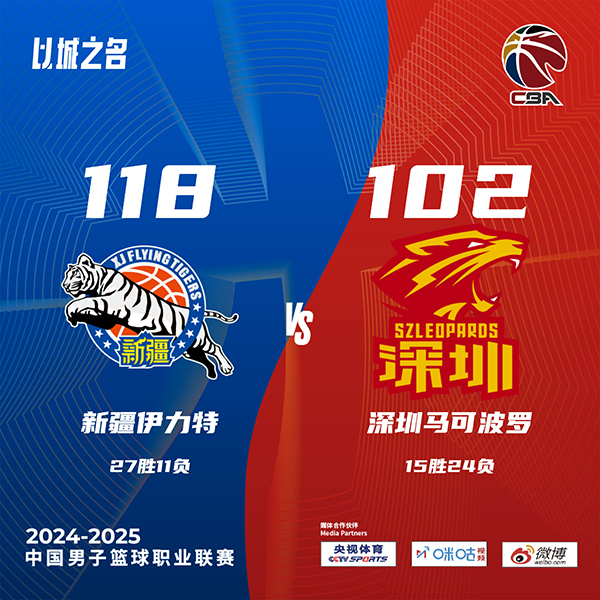 新疆118-102终结深圳 齐麟22分 阿不都11+15+6 贺希宁20分