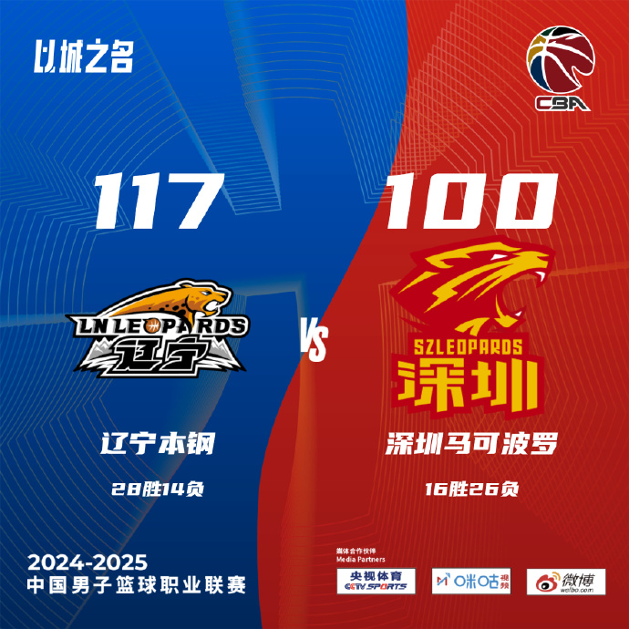 辽宁117-100大胜深圳 赵继伟7分13助 张镇麟20+9 威尔斯21分