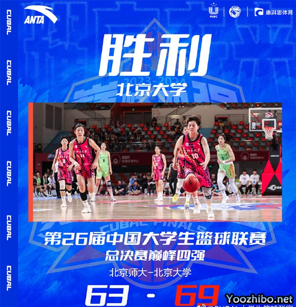 JRS直播网讯:北京时间6月30日下午,第26届中国大学生篮球联赛(CUBAL)女篮总决赛在杭州打响。本次比赛由北京大学对战北京师范大学,经过激烈比拼,北大女篮最终以69:63获得本届比赛全国总冠军,队员王家绘获得了最佳球员称号。