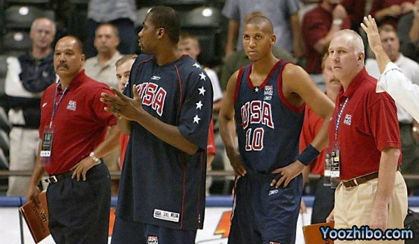 这支NBA梦之队(如果该球队配得上“梦五队”这个称呼的话)是为2002年在美国本土印第安纳州印第安纳波利斯举行的世界男篮锦标赛而召集的。在NBA密尔沃基雄鹿队主教练乔治·卡尔(George Karl)的带领下,这支球队竟然只获得了第六的名次,这也是以NBA球员为班底的美国男篮第一次在国际大赛中使冠军旁落,而且是在自家门口。比2000年更糟的是更多的NBA顶级球员拒绝为国效力(以阻止NBA巅峰OK湖人四连冠的居多),所以美国篮协只得选择以二流NBA球员为主组队参加比赛。