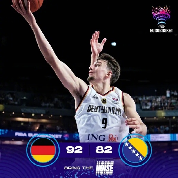 JRS直播网9月3日讯 在今天结束的一场欧锦赛B组的小组赛中,德国92-82逆转击败波黑,取得两连胜。半场结束时,波黑47-42暂时领先德国。比赛来到第三节,德国单节打出28-11,顺利逆转局势。最终,德国依靠末节的稳定发挥获得了比赛胜利。