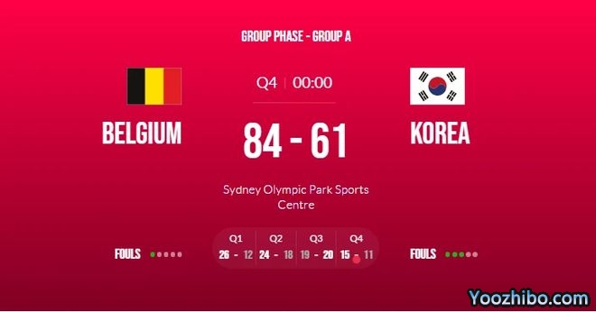 单节比分:26-12、24-18、19-20、15-11(韩国女篮在后)。
