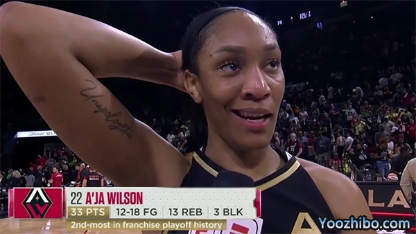 此役,王牌内线核心阿贾-威尔逊砍下33分13篮板1助攻3盖帽,切尔西-格雷贡献19分7篮板7助攻1抢断1盖帽,普拉姆则有18分3篮板1抢断入账。