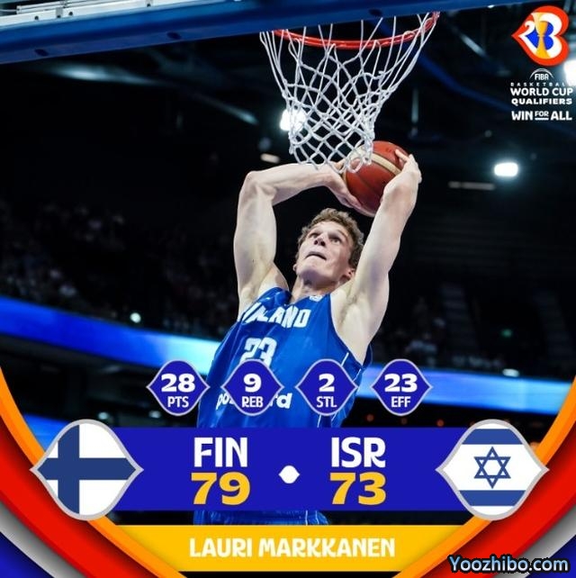 JRS直播网讯 8月26日讯在今天结束的一场世预赛第四窗口期的比赛中,芬兰79-73击败以色列。