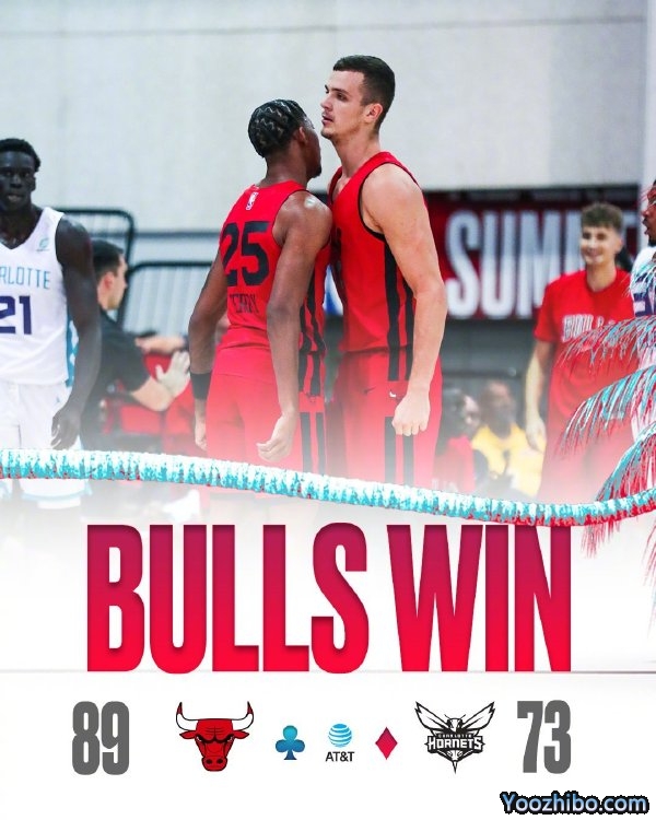 JRS直播网讯 7月15日讯 NBA拉斯维加斯夏季联赛,公牛今日对阵黄蜂,前者上场比赛战胜猛龙,后者则是取得两连胜。比赛上来两队打得十分胶着,场上比分也是交替领先,但首节后半段公牛逐渐开始占据主动并取得领先,次节黄蜂彻底陷入低迷,半场结束时他们已经落后了18分。易边再战,双方开始保持拉锯,分差始终保持在二十分左右,黄蜂也没有再获得任何机会,最终公牛大胜黄蜂获得连胜。