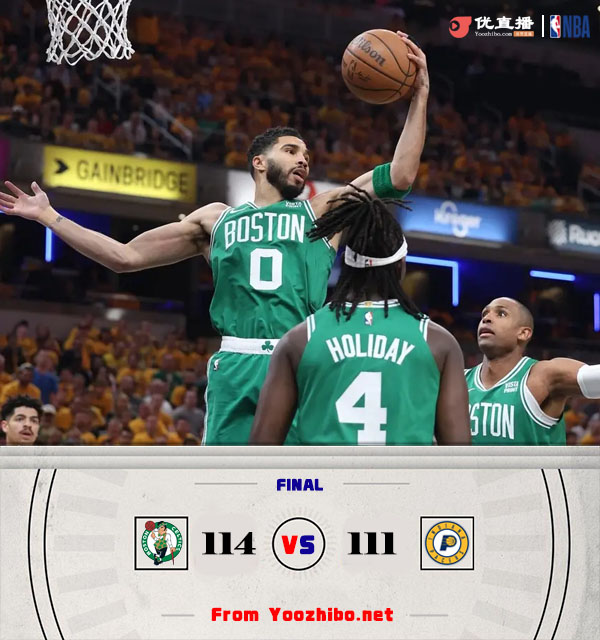JRS直播网5月26日讯 NBA季后赛东部决赛G3,步行者今日回到主场迎战凯尔特人,双方前两战凯尔特人都取得胜利大比分2-0领先,此役哈利伯顿和波尔津吉斯均缺战。比赛上来,凯尔特人就率先进入状态打出8-2的开局取得领先,步行者虽然一直处于落后但始终紧咬比分,首节他们只落后1分,次节步行者继续冲击内线,特纳连续得分帮助球队成功反超,托平的追身中距离更是将分差拉开到两位数,半场结束时凯尔特人落后12分;下半场回来,步行者的命中率有所下降,不过凯尔特人也并没有迫近比分,双方一直围绕着十分左右的分差展开拉锯,末节凯尔特人发起凶猛的反扑,比赛悬念也是打了回来,关键时刻霍勒迪打成反超2+1,内姆哈德中距离打铁,随后又是被霍勒迪面断,内史密斯绝平三分不中,最终凯尔特人18分逆转步行者,大比分3-0拿到赛点。