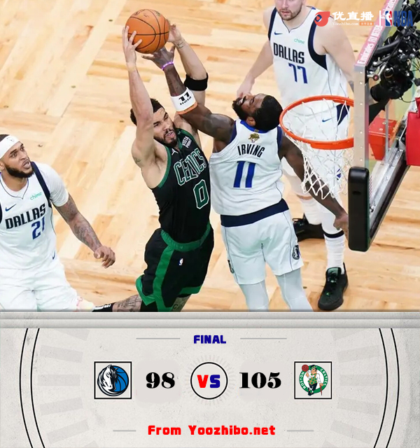 JRS直播网 6月10日讯 NBA总决赛G2,凯尔特人继续坐镇主场迎战独行侠。目前总比分凯尔特人1-0领先。东契奇带伤出战,欧文G1后豪言“我还以为这的嘘声会更大一点”更让本场比赛充满看点。比赛开始,东契奇高效输出带队占据主动,凯尔特人连投带罚顽强咬住,欧文连续单打得手,次节凯尔特人奋力反击打出9-0的攻击波反超比分,独行侠轮番冲击内线拿分止住颓势,霍勒迪攻防两端稳定发挥,半场战罢凯尔特人54-51反超独行侠3分。易边再战,独行侠占得先机一度反超,但此后凯尔特人火力全开轰出10-0的攻击波获得两位数优势,独行侠连中三分追赶,末节双方围绕10分左右分差展开激烈争夺,凯尔特人多点开花保持优势,欧文和东契奇联手拿分苦苦支撑,朱-霍勒迪和德里克-怀特相继命中三分,独行侠苦苦追赶,怀特关键时刻追防PJ华盛顿送出大帽。最终,凯尔特人105-98再胜独行侠,总比分2-0领先。