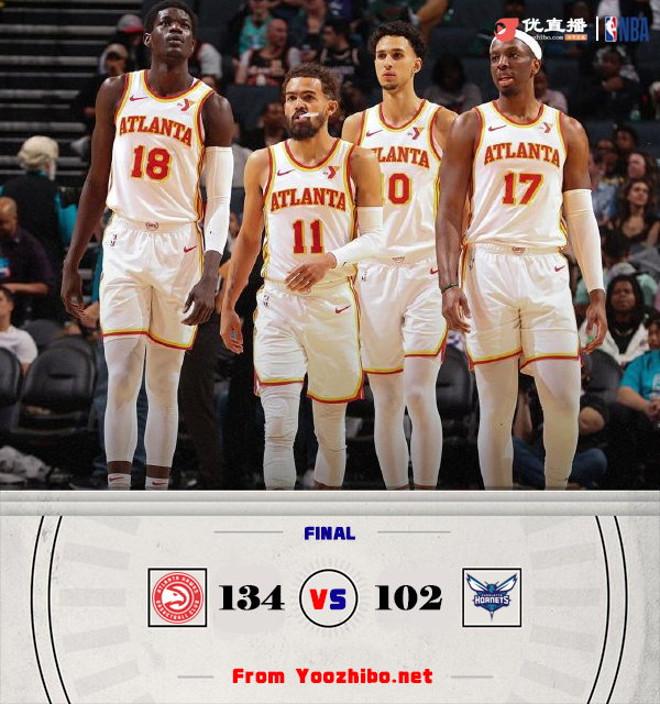 JRS直播网讯北京时间3月19日讯 NBA常规赛,老鹰对阵黄蜂,老鹰最近2连败排东部第七,黄蜂上场比赛惨败给快船,鲍尔和布里奇斯本场比赛缺阵。比赛开始后老鹰就在防守端展现出不错的强度,多次形成抢断和封盖,奥孔武连中三记三分帮助老鹰建立优势。杰弗里斯找到手感连续拿分回应,黄蜂一路追到只差1分。第二节老鹰率先发力又将分差拉大到两位数,黄蜂虽然期间多次掀起反扑,但老鹰外线手感不错多次回应三分,半场结束前老鹰又是连连打出反击巩固优势。易边再战,老鹰上来一阵三分雨直接将分差拉大到20分以上,其中里萨谢独中三元。此后黄蜂也无力再缩小分差,老鹰末节依旧轻松掌控场上局面,迪亚巴特受伤,最终老鹰134-102大胜黄蜂结束2连败,黄蜂连遭两场大败。