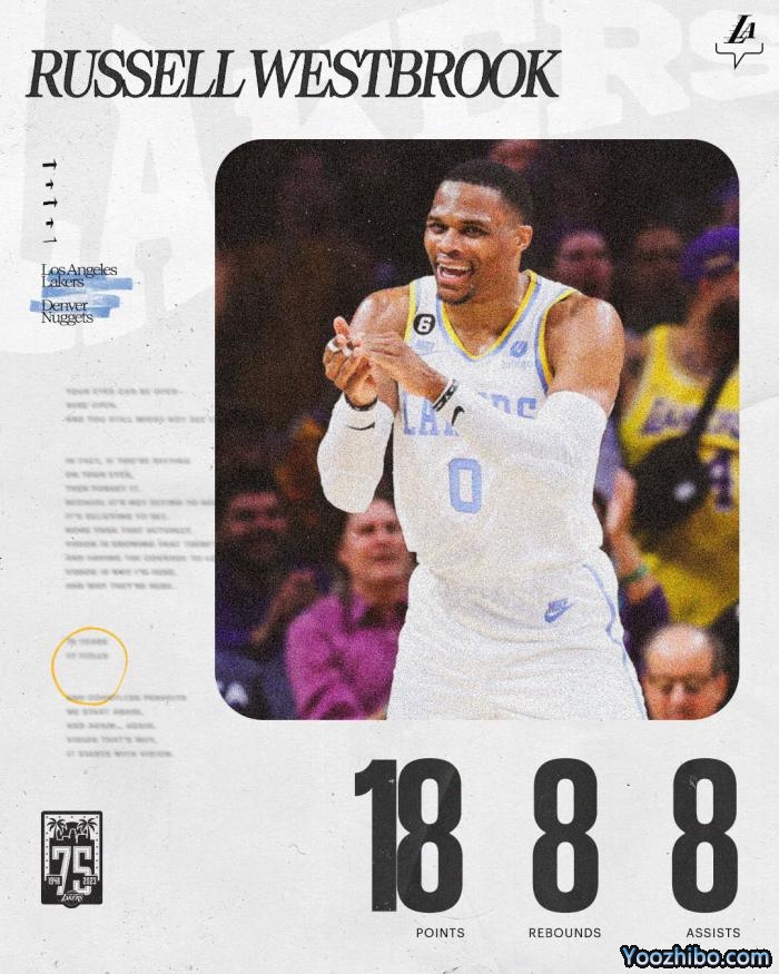 JRS直播网10月31日,洛杉矶湖人队终于赢了,主场121-110击败掘金迎来赛季首胜,终结扎心的5连败;威少替补上场32分钟,12投6中拿到18分8篮板8助攻,在场正负值+18全场最高;关键时刻,威少抢到前场篮板并且打进关键球,为湖人赢球立大功。