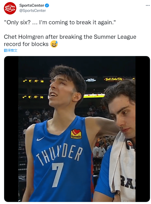 1、霍姆格伦单场6次盖帽创造NBA夏联新的历史纪录