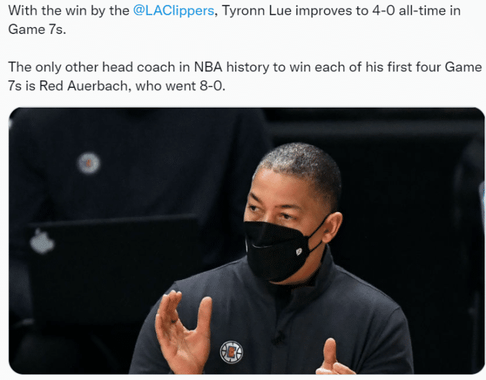 JRS直播网讯 结束了,湖干了,船没有翻,快船队保留住了洛杉矶最后一点颜面,在输掉了前两场比赛,卢指导命硬的属性开始发威,他把比赛拖到了抢七,并且卢指导并没有像老里弗斯一样习惯性地输掉抢七,毕竟卢指导还是很明白,既然咱不懂,就直接托管,别添乱,事情不就解决了。