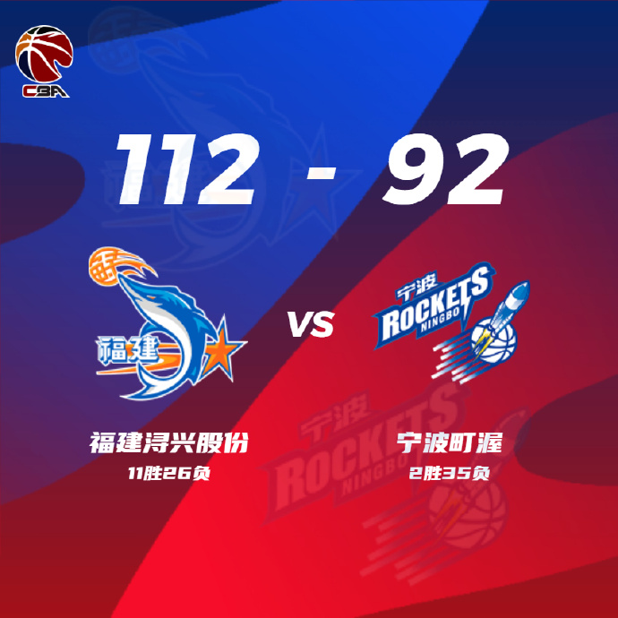JRS直播网3月19日讯 CBA常规赛继续进行,福建对阵宁波,此前福建10胜26负排名联赛第17,宁波则是在一波14连败后2胜34负继续排名联赛垫底。比赛开局,宁波进攻状态不佳,福建众人发力很快领先到两位数,此后分差在十分上下浮动,福建领先9分进入次节。第二节宁波进攻端回暖,逐渐蚕食分差并一度反超比分,半场结束福建52-51仅领先1分。易边再战,宁波再次陷入得分荒,福建稳扎稳打重新拉开比分,领先17分进入第四节。末节回到场上,福建将分差拉开到20分,比赛逐渐失去悬念,最终福建112-92大胜宁波,送对手15连败。