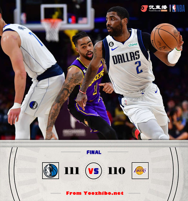 JRS直播网3月18日讯 NBA常规赛继续进行,湖人主场迎战独行侠,湖人目前34胜36负排在西部第9位,而独行侠则是35胜35负排在西部第7位,本场比赛对双方的排位都有重大影响,欧文本场比赛火线复出,东契奇继续伤缺。比赛开始,湖人打得非常主动,布朗的三分和浓眉的内线很快建立起主动权,但独行侠依靠稳定的外线手感迅速追上比分,双方展开拉锯战,次节独行侠开始包夹浓眉,湖人外线不开使得进攻端非常不流畅,欧文里突外投带领三分手感火热的独行侠直接反超8分。下半场,欧文继续保持火热手感,里突外投帮助独行侠守住优势,末节施罗德和浓眉一内一外帮助湖人追分,里夫斯接连突内线又帮助湖人反超比分,随后独行侠连续浪费机会,湖人将分差拉开至两球以上,克莱伯三罚全中后追到差1分,浓眉关键两罚中一,克莱伯压哨三分绝杀,最终独行侠111-110险胜湖人。