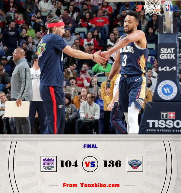 JRS直播网2月6日讯 今日NBA常规赛,鹈鹕坐镇主场迎战国王,鹈鹕上一场刚刚终结十连败,目前以27胜27负排名西部第十,国王则是29胜22负高居西部第三。本场福克斯和英格拉姆缺阵。比赛开局,国王首发进攻状态不佳,鹈鹕很快建立两位数的领先优势,替补上场后国王稍稍迫近比分,次节鹈鹕延续进攻状态,外线多点开花,国王无法在进攻端匹配,鹈鹕一度打出一波11-0的进攻高潮,分差来到20分,半场结束,鹈鹕70-52领先。易边再战,国王依然没能打开进攻状态,鹈鹕延续场上优势,一举将分差拉开到30分。比赛很快来到第四节,两队交替得分,比赛很快失去悬念,进入垃圾时间,最终鹈鹕主场136-104大胜国王,取得两连胜。