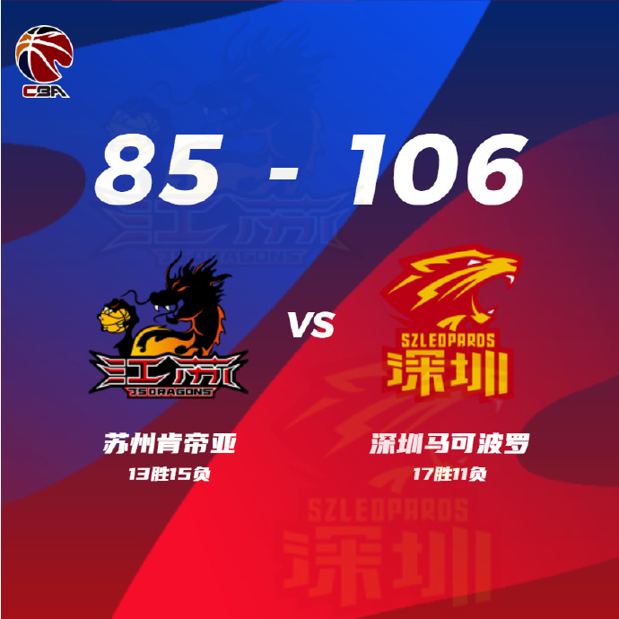JRS直播网1月19日讯 CBA常规赛第二阶段江苏对阵深圳,江苏目前排在联赛第十三,最近球队状态低迷遭遇4连败,深圳则排在联赛第八,上场比赛他们不敌广州,沈梓捷继续因为肩伤缺阵。开场后江苏首先在外围发炮,开场不久赵率舟和马建豪就命中五记三分,深圳则是内外开花打得更为合理,孙浩钦和贺希宁轮番拿分,首节深圳取得5分优势。第二节回来布莱克尼开启得分模式连连砍分,但深圳得分点更多,顾全和萨林杰帮助深圳守住领先优势,上半场深圳51-45领先。下半场回来江苏依旧主要靠双外援拿分,深圳这边则是萨林杰和顾全一内一外打得风生水起,他们帮助深圳将分差拉大到两位数,江苏也开始失误增多,分差一度被拉大到20分。此后深圳牢牢占据场上的主动,顾全也持续火热手感,双方的分差继续被拉大,比赛彻底失去悬念,最终深圳106-85轻松拿下胜利送给江苏5连败。