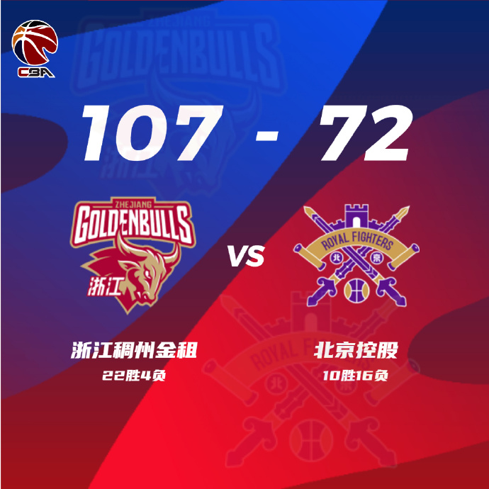 JRS直播网1月14日讯 CBA常规赛继续进行,领头羊浙江迎战北控,北控近期惨遭连败,目前以10胜15负暂列联赛倒数第5位,浙江上场爆冷不敌天津,目前仍以21胜4负继续领跑。此役北控新外援布里恩-艾伦上演首秀。比赛开打后双方状态稍显慢热,中段北控内线率先发力,邹雨宸和王俊杰先后取分,吴前连投带罚及时回应,首节结束时北控暂时领先1分,次节回来,吴前延续火力单节独得12分,浙江开局阶段一举反超,中段双方你来我往继续缠斗,但末段北控进攻再次断电,浙江一波9-0拉开比分,半场战罢,浙江反超10分。下半场回来,北控进攻依旧低迷,陆文博找到手感连中三分,末段浙江再度发力轰出15-2攻击波,三节结束后浙江已经领先30分,末节上来,浙江早早换上替补,全员发力的他们延续火力再度打出13-2小高潮,双方分差越拉越大,最终浙江107-72狂胜北控。