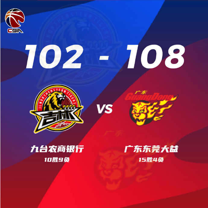 JRS直播网12月28日讯 CBA常规赛第二阶段继续进行,吉林对阵广东,吉林最近2连胜,10胜8负暂列积分榜第9,而广东则是状态爆棚豪取9连胜,14胜4负排在第4位。双方上来手感都一般,但很快调整外线手感接连打起对飚,广东队全民皆兵还是稍稍占据领先,随后吉林队“二姜”找回手感,姜宇星次节单节砍下12分,加上姜伟泽的外线三分,吉林很快占据双位数领先,好在易建联接连两记三分止血。下半场,徐杰联手赵睿接连外线发炮并送出助攻,帮助广东打出17-5攻击波一举反超比分,末节布鲁克斯接连外线发炮直接拉开双位数分差,但吉林通过三分也能继续咬住,但赵睿挺身而出,得分加助攻帮助广东重新拉开分差,最终广东108-102力克吉林,豪取10连胜。