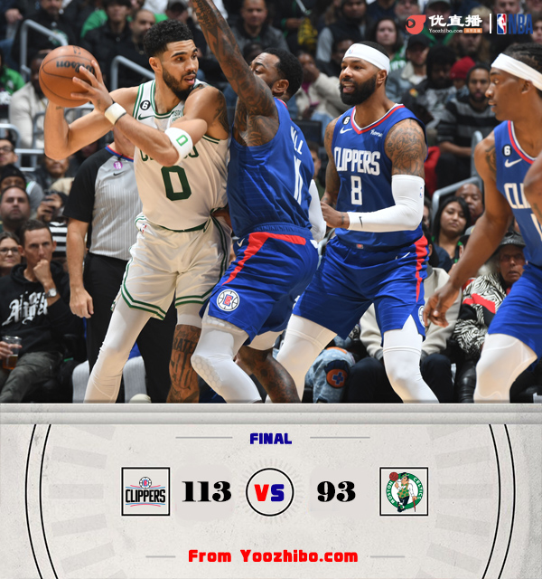JRS直播网12月13日讯 NBA常规赛继续进行,快船主场迎战凯尔特人,快船目前15胜13负排在西部第7位,小卡和乔治复出后状态还是很不错的;凯尔特人上一场虽然不敌勇士,但依然21胜6负的战绩稳居东部榜首。快船上来就多点开花,通过外线三分打出20-3的超级进攻高潮一举奠定领先,塔图姆手感不佳的情况下布朗又受到犯规困扰,但布罗格登成为替补奇兵,里突外投帮助绿军重新咬住比分。下半场,小卡继续火热手感帮助快船重新拉开至双位数分差,肯纳德等替补球员也接连外线发炮帮助快船扩大至20分以上领先,而绿军双探花状态一般,外线也迟迟不开,最终快船113-93轻取凯尔特人。