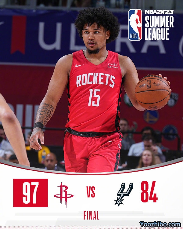 JRS直播网7月12日讯 NBA夏季联赛继续进行,火箭对阵马刺。在火箭已经结束的两场比赛中,新科探花史密斯防守端表现尚可,但进攻端迟迟找不到自己的节奏,反倒是17号秀伊森攻防两端都展现出自己的能量,泰泰也表现不俗。一开场,双方互送进攻高潮,伊森攻防两端立功,但火箭依旧落后1分结束首节。第二节,马刺持续发力,连续打出进攻高潮一度取得18分优势,火箭回敬10-0的攻击波,半场战罢火箭46-54落后8分。下半场,火箭展开反击,打出9-2的攻击波反超比分,三节打完火箭反超2分。第四节,火箭加强防守通过反击稍稍扩大领先,马刺连中三分顽强咬住。末段火箭连续打成反击,克里斯托弗和史密斯合力帮助球队拿下比赛。最终,火箭完成18分的逆转,战胜马刺。值得一提的是,火箭本场全队送出15次抢断和7次封盖。
