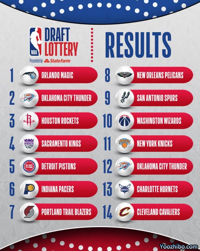 JRS直播网讯 北京时间5月18日讯 2022年NBA选秀抽签仪式今日进行,根据常规赛战绩,火箭、魔术和活塞、雷霆(本身12.5%+快船签1.5%)均有14%的概率抽中状元签,步行者(10.5%)也有超过10%的概率。其中魔术抽中状元签,雷霆抽中榜眼签,火箭抽中探花签,湖人的8号签最终归属鹈鹕。最终,魔术喜获状元签!雷霆获得榜眼、火箭获得探花、国王第四。