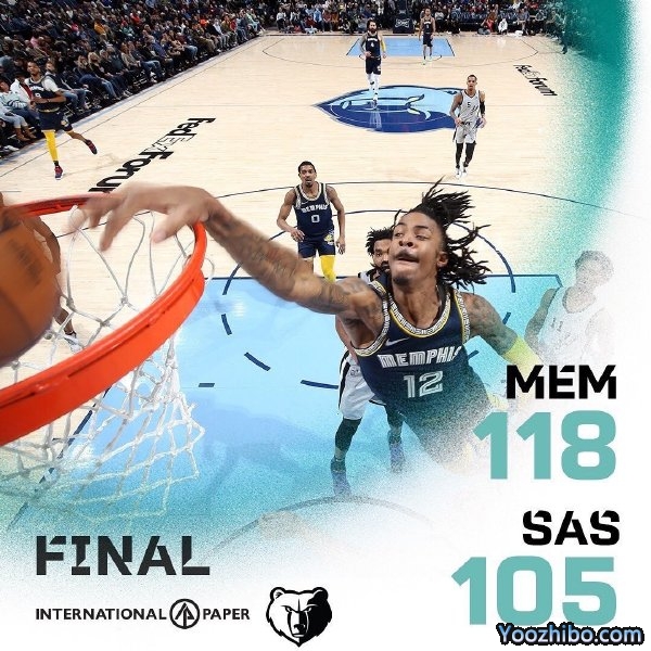 JRS直播网 3月1日讯 NBA常规赛,灰熊主场对阵马刺。灰熊第一节就轰下42分,在莫兰特的带领下逐渐扩大领先优势,最终在主场击败马刺,取得两连胜。