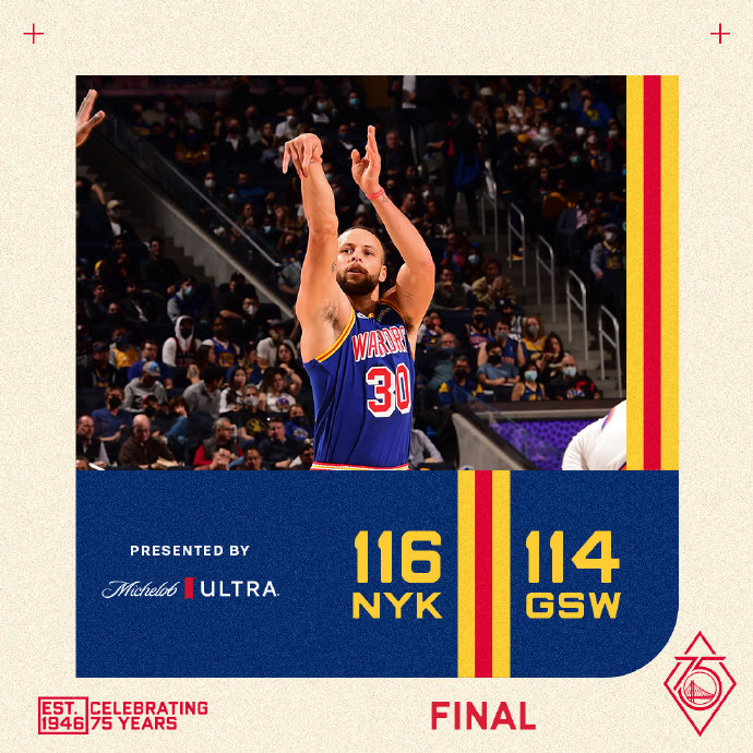 JRS直播网2月11日讯 勇士今日回到主场迎来尼克斯的挑战,勇士上一场不敌爵士结束9连胜,尼克斯则遭遇4连败表现低迷。首节之争尼克斯“扮猪吃老虎”一路维持着不错的进攻状态,节末轮换他们抓住对手衔接段不能得分的机会下起三分雨并反超取得5分领先,次节成为库里的表演时间,这位首节仅得2分的超级球星在第二节独砍17分,一人拿下球队这一节一半得分帮助勇士反超5分进入下半场。第三节尼克斯再一次发动反扑,他们开局一波11-0的攻势迅速反超比分,随后面对勇士的反扑,兰德尔梦回上个赛季单节砍下11分守住领先,末节开局尼克斯再送9-2的攻势一度取得两位数领先,勇士虽然一直扮演追分角色但也能够凭借稳定输出不断蚕食分差,不过撤下卢尼导致不断丢篮板,而兰德尔最后时刻打进制胜进球杀死比赛。最终,尼克斯险胜勇士结束4连败,勇士则遭遇2连败。