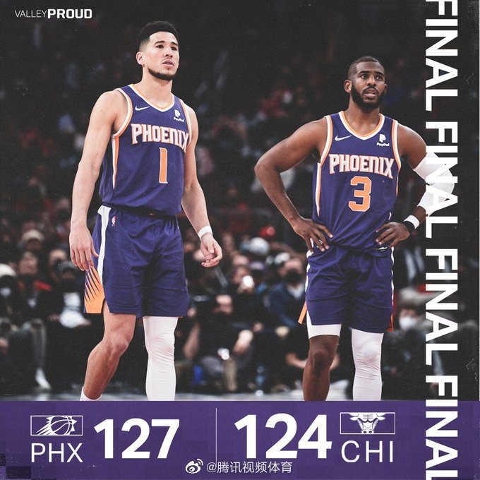 JRS直播网2月8日讯 NBA常规赛太阳对阵公牛,太阳刚开场就在保罗和艾顿的带领下打出攻势取得领先,虽然拉文接连砍分为公牛缩小分差,但布克手感火热帮助太阳再次拉开分差。第二节回来公牛仍旧表现低迷,太阳趁势又是打出一波高潮将分差拉大到21分。虽然拉文再次开火追分,但布克毫不示弱连续回应,上半场太阳67-49领先。下半场回来保罗和布克两人仍旧发挥出色,太阳在他们的带领下一度领先到25分,公牛仍旧是靠着拉文的发挥稍微拉回些分差,第四节麦基内线接连砍分,但公牛在德罗赞的带领下一度将分差缩小到9分,但太阳及时稳住阵脚将分差巩固在两位数,在垃圾时间公牛虽然追回些分数但也无济于事,最终太阳127-124击败公牛。