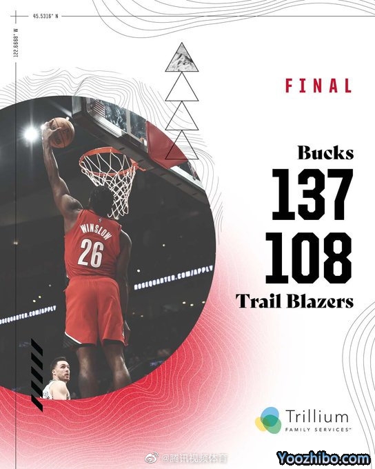 JRS直播网2月6日讯 NBA常规赛,4连败的开拓者主场迎战雄鹿。首节雄鹿外线火力凶猛,字母哥、波蒂斯、迪文岑佐等人单节联手飚中七记三分,球队也用一波27-8的进攻狂潮取得18分的领先优势,好在麦克勒莫节末站出来连续砍分将分差缩小到个位数,次节开拓者靠着麦科勒姆和西蒙斯的得分一度紧咬比分,然而他们还是没能挡住对手无解的三分投射,半场结束时已然落后16分。第三节字母哥里突外投无所不能,波蒂斯也在外线连投连中,雄鹿再送一波12-0的攻势取得30分的优势就此终结比赛悬念,末节沦为两队练兵时间,雄鹿替补群持续高效输出稳稳收下比赛。最终,雄鹿全场飚中23记三分,客场以137-108大胜开拓者,送给对手5连败。