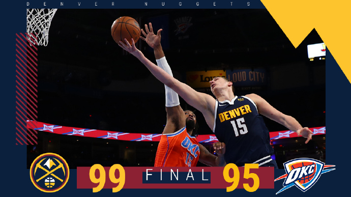 JRS直播网1月10日讯 NBA常规赛,掘金客场挑战雷霆。击败国王后掘金止住连败,战绩紧咬湖人排在西部第7位。雷霆则是遭遇了3连败,目前只领先火箭排在西部倒数第2名。一开场,掘金迅速进入状态,雷霆则全队梦游,掘金22-4大比分领先。随后雷霆逐渐回暖,首节结束掘金领先13分。次节比赛,两队围绕着10分左右的分差展开激烈争夺,里弗斯独中三记三分,雷霆强攻内线频频得手,半场战罢掘金61-49领先12分。易边再战,掘金命中率下滑,雷霆趁势反击,多特和基迪联手发力帮助雷霆一度反超比分。里弗斯再中三分,三节打完掘金只领先2分。第四节,雷霆持续发力打成10-1的攻击波一度反超5分,里弗斯挺身而出连得5分,巴顿罚球杀死比赛。