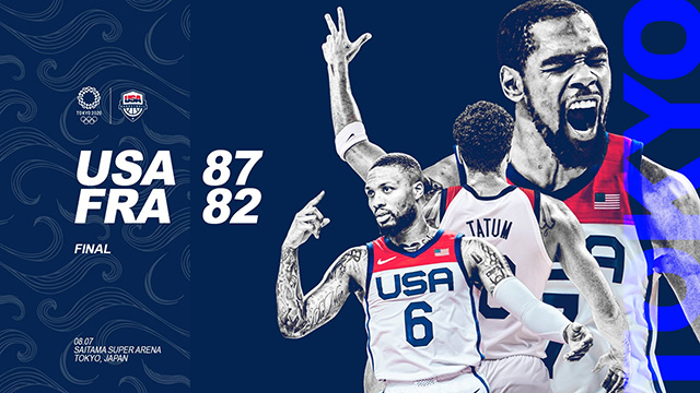 JRS直播网8月7日讯 美国男篮和法国男篮今日迎来奥运会决赛争夺,美国上一场轻松击败澳大利亚杀入决赛,法国则凭借巴图姆的致命封盖赢下决赛门票,值得一提的是,2019年世界杯中法国男篮在四分之一决赛中10分击败美国并拿到最终第三名的成绩。首节之争法国是更早进入状态的一方,然而拉锯战里自己整体手感一般导致分差迟迟拉不开,这也给了慢热的美国机会,后者在杜兰特和塔图姆的联手中送出12-4的攻势迅速追上比分,次节杜兰特继续杀神一般砍分,在半节未结束之前他就攻下21分并带领美国拉开两位数领先,不过法国及时悬崖勒马,戈贝尔节末连砍8分帮助法国将劣势缩小至5分结束上半场。第三节塔图姆连砍7分一度帮助美国再次拉开两位数领先,不过法国总能崩盘边缘找回状态,卢瓦乌和巴图姆两记三分为法国保留希望。末节法国一波7-2的开局将分差追至3分看到了希望,不过美国关键时刻迅速回暖并在塔图姆的三分进球中重新取得10分领先奠定胜局。最终,美国男篮力克法国再度摘得奥运桂冠。
