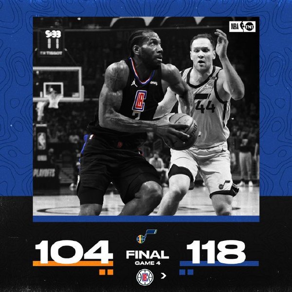 JRS直播网6月15日讯 快船今日坐镇主场迎来和爵士的G4争夺,上一场爵士不敌快船未能夺得赛点。首节之争快船做足准备上来就是万箭齐发下起三分雨,系列赛前三战三分总计16投1中的莫里斯贡献三记三分,他和小卡首节联手攻下23分,而爵士这边手感冰冷无法匹敌对手,首节他们就落后快船17分。次节之争米切尔站出来命中4记三分独砍17分,奈何快船这边攻势如潮,双核外加莫里斯半场合力贡献56分,快船带着24分的领先进入下半场。易边再战的爵士终于在进攻端占据上风,他们抓住快船进攻端回落的机会一度追至14分,奈何对手总有爆发的时候,节末快船回敬7-0的攻势重新拉开比分掌控比赛。巨大的分差让末节早早失去悬念,纵使爵士仍不放弃一度将分差追至10分,但时间不足以他们上演逆转。最终,快船主场再胜爵士连扳两场,总比分上2-2战成平手。