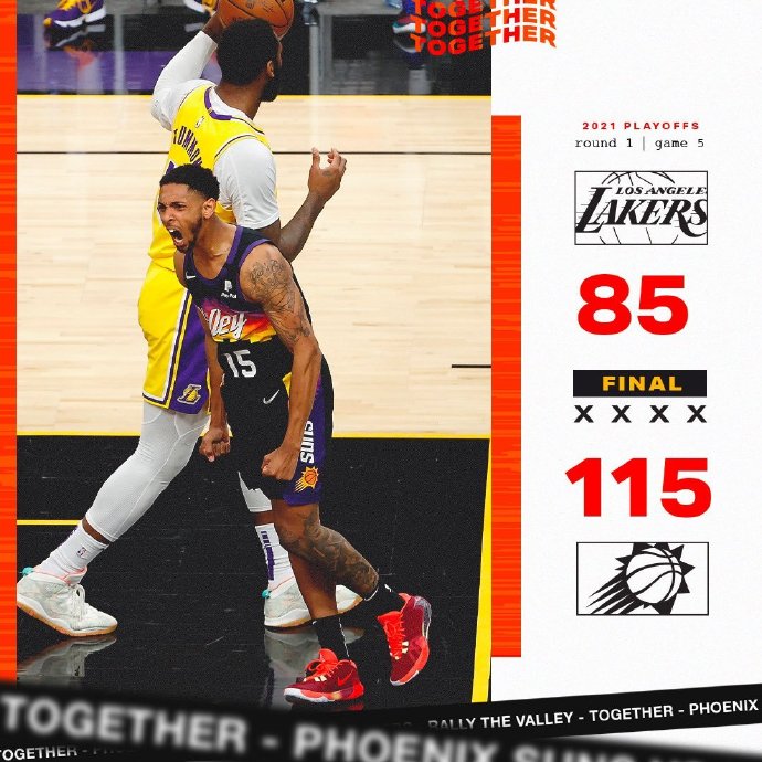 JRS直播网6月2日讯 NBA季后赛今天迎来一场焦点之战,湖人客场进行与太阳的天王山之战。上一场比赛浓眉的突然受伤打乱了湖人的节奏,太阳也趁势将总比分扳平,双方回到同一起跑线。此番浓眉因伤缺阵,尽管赛前给出了浓眉在场的净效率值不高的统计,但詹姆斯单核作战面对阵容齐整的太阳队,湖人非常凶险。一开场,湖人反客为主率先发力,此后却突然断电,太阳一波16-0取得两位数优势,首节打完太阳领先8分。第二节,太阳再打一波16-1扩大优势,湖人单节仅得10分,半节战罢太阳66-36领先30分。下半场,保罗肩伤加重返回更衣室,詹姆斯连得8分,但太阳没有慌乱,多点开花维持优势,三节结束太阳领先29分。第四节,过大的分差让比赛早早失去悬念,双方尽遣替补打完剩余时间。最终,太阳主场大胜湖人,赢下天王山之战。